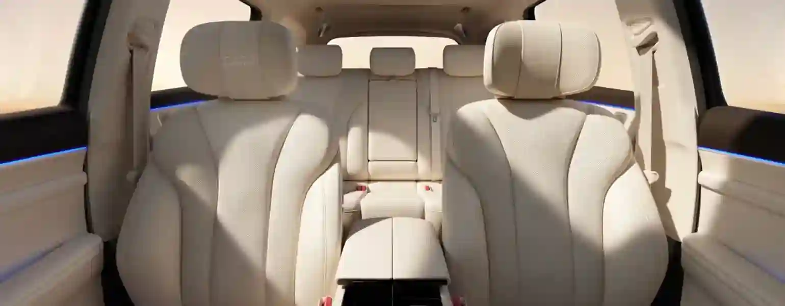 Все сиденья имеют многослойные подушки повышенной комфортности и отделку из кожи с текстурой Nappa премиального качества, двойное звукоизолирующее остекление, панорамную стеклянную крышу большой площади с люком и электронаклон. В отделке интерьера использованы гипоаллергенные материалы.