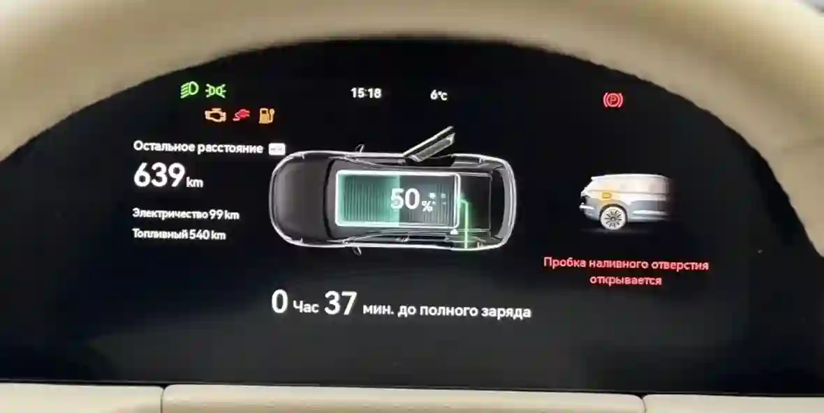 Этот гибрид поддерживает быструю зарядку до 75 кВт. Но я тестировал на зарядке на ВДНХ с мощностью 55 кВт. С 20% до 80% заряжалась машина примерно час с лишним, после 80% скорость падает в 2-3 раза для сохранения батареи.