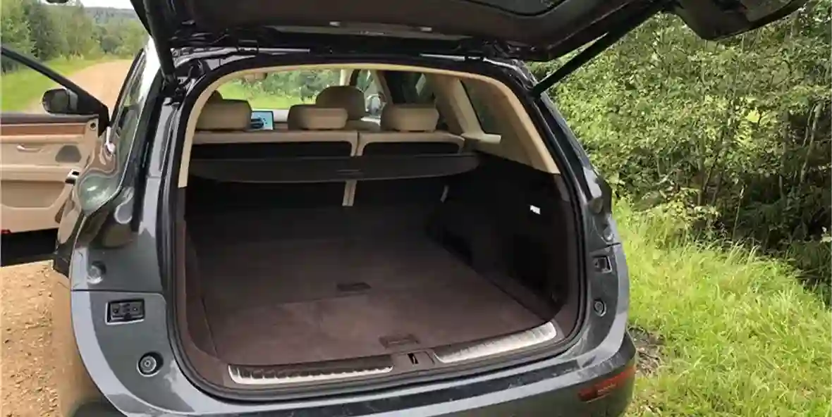 Объем багажника в стандартном положении – 686 литров, при сложенной спинке второго ряда сидений – 1619 литров. Для фиксации груза есть откидные пластиковые крючки и металлические петли.